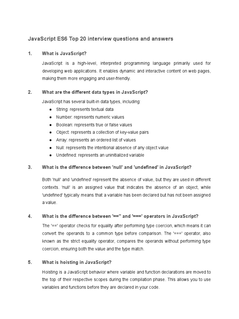 Top JavaScript Interview Questions | PDF | Java Script | Scope ...