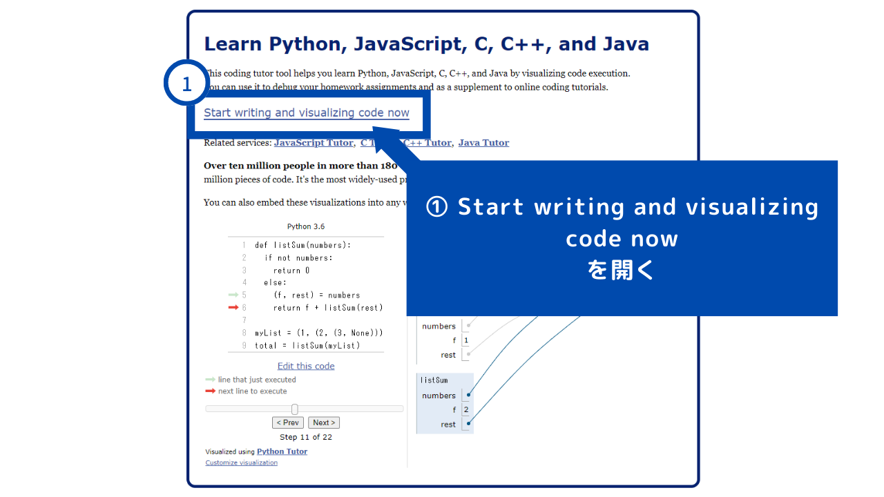 コードが難しくて理解できないときは「Python Tutor」ビジュアル化!JavaScriptなども対応 | びんせんメディア