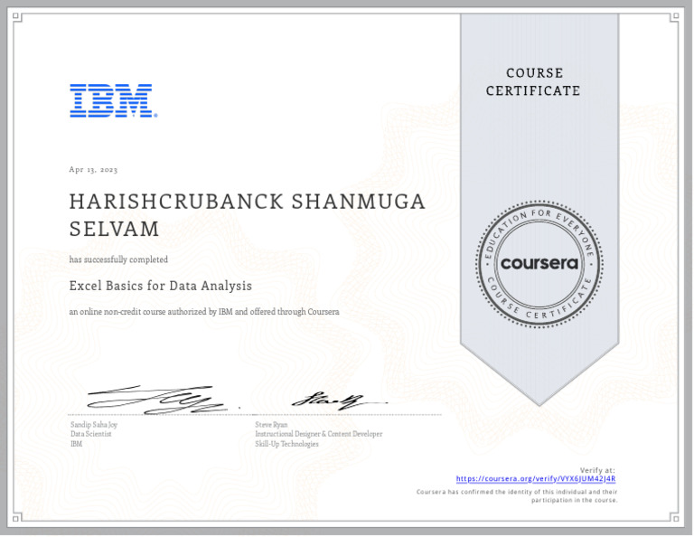 Certificate of Excel Basics for Data Analysis | PDF