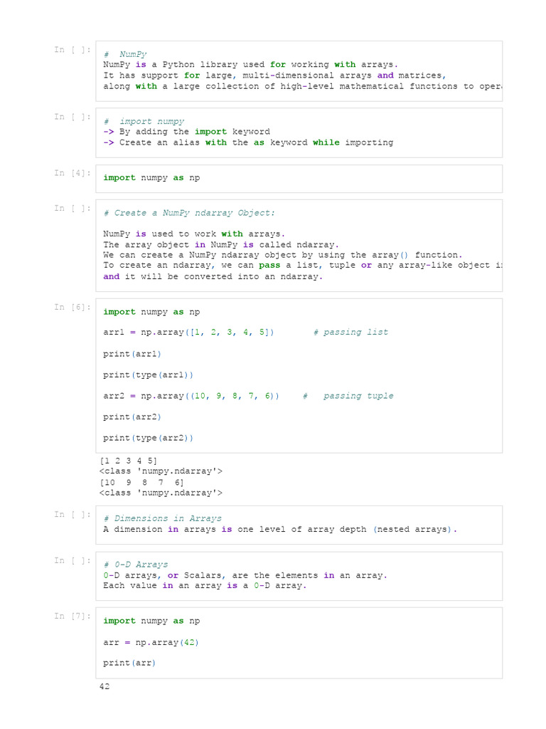 NumPy Array Basics for Beginners | PDF