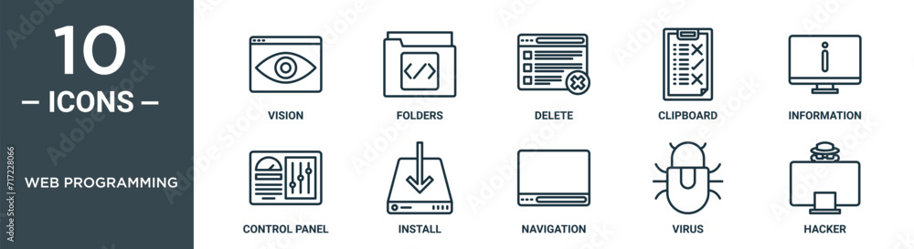 web programming outline icon set includes thin line vision, folders ...