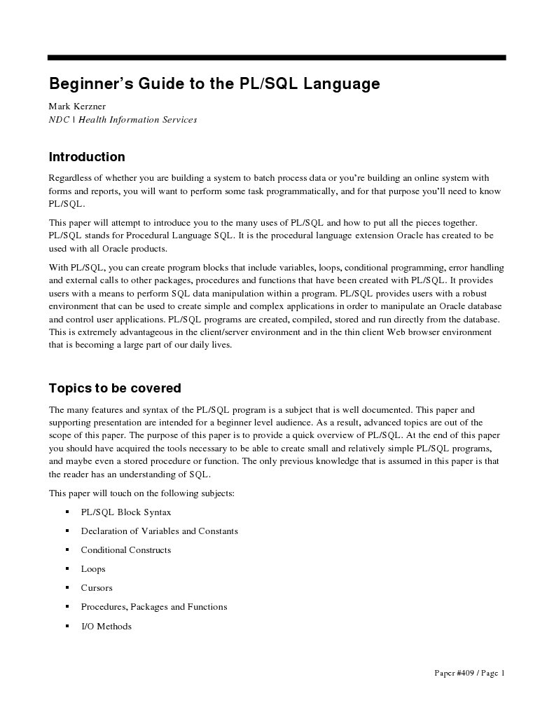 Comprehensive Guide to Oracle PL/SQL for Beginners and | Course Hero