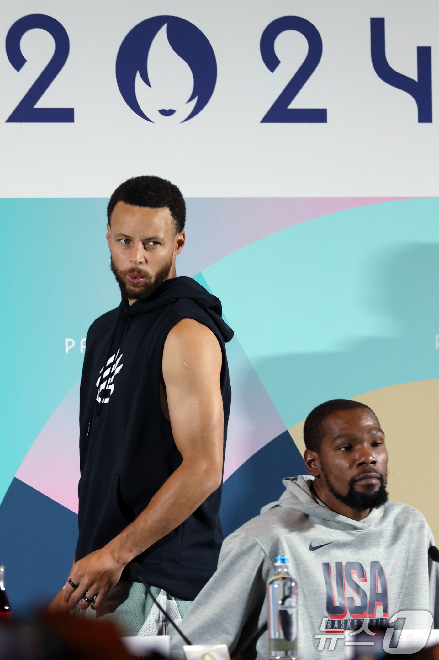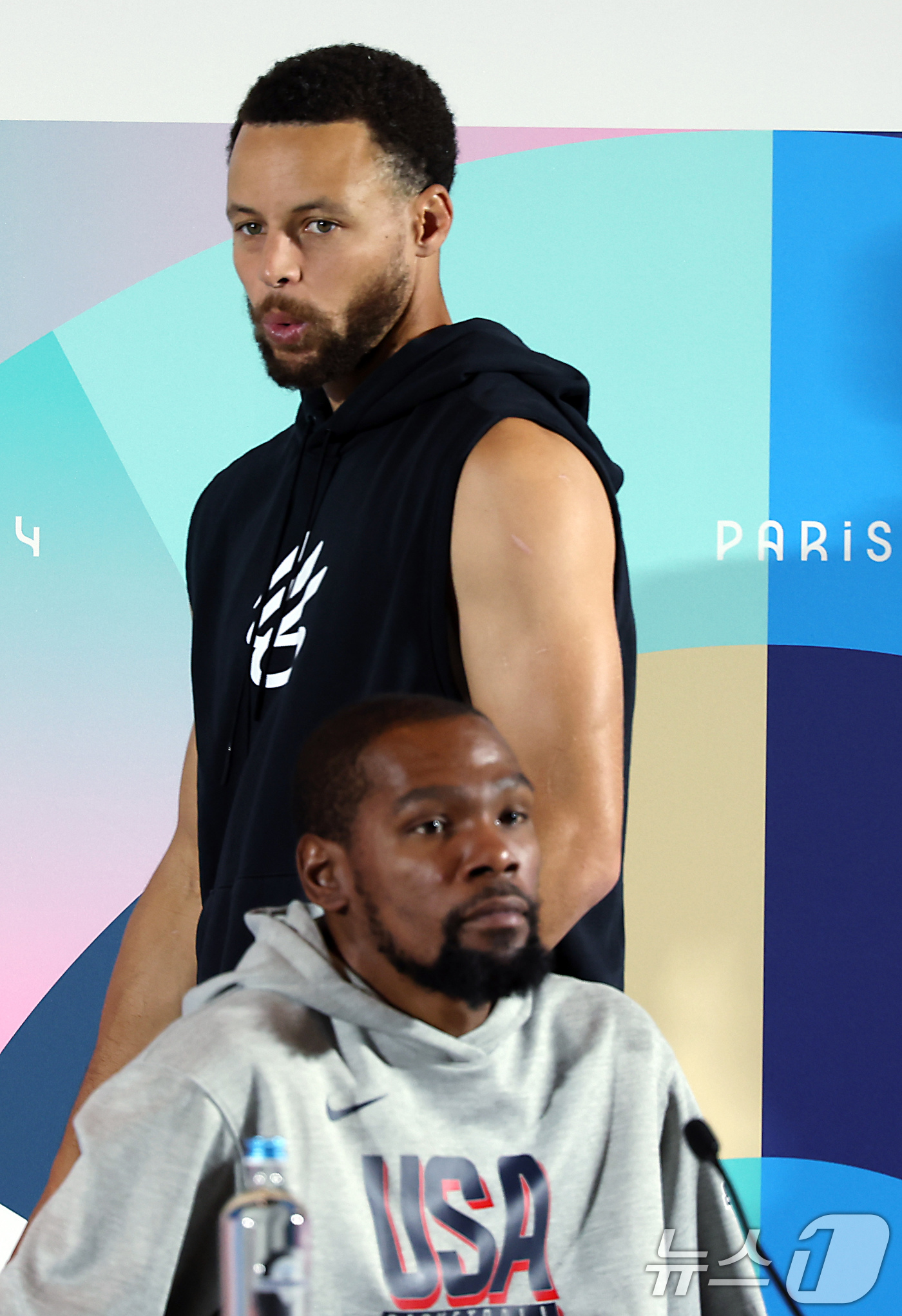 파리올림픽 기자회견 나선 스테판 커리와 케빈 듀란트