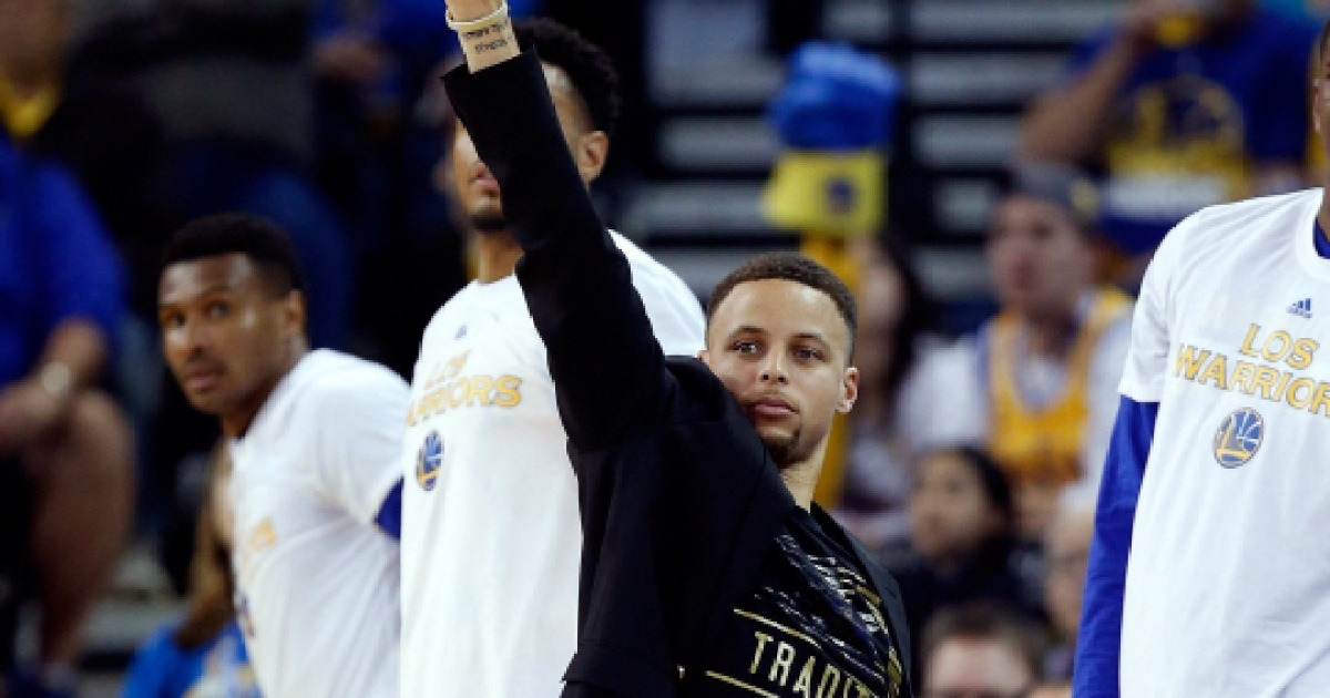 [포토] 스테판 커리 '오늘은 벤치에서 응원할게'