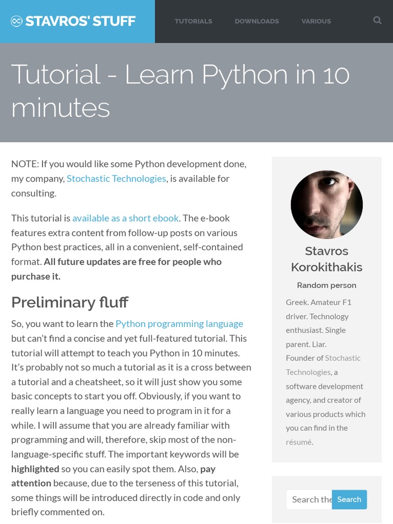 Tutorial - Learn Python in 10 minutes - Stavros' Stuff | Tutorial ...