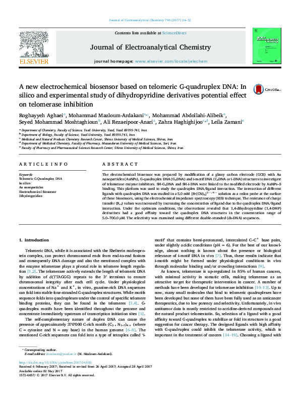 (PDF) Electrochemical Biosensor for Telomerase Inhibition