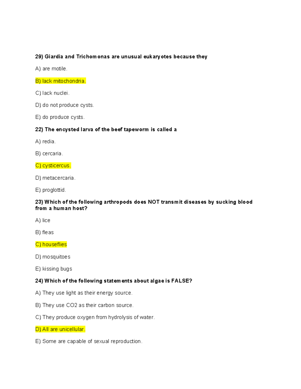 Microbiology Quiz: Eukaryotes, Parasites, and Fungal Infections (HU DR ...