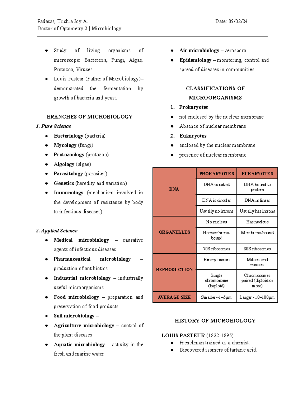 Optometry 2: Microbiology Lecture Notes on Microorganisms and History ...