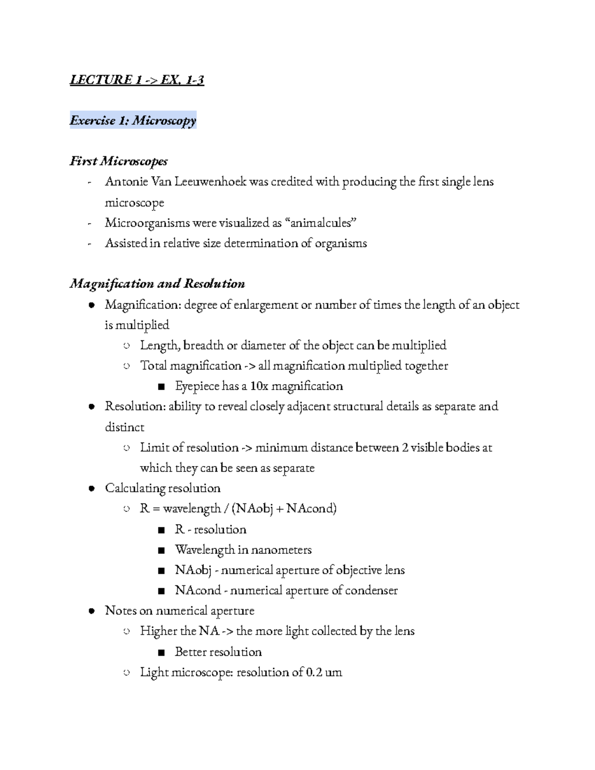Micro Lab LEC Midterm Notes: Microscopy & Culture Techniques - Studocu