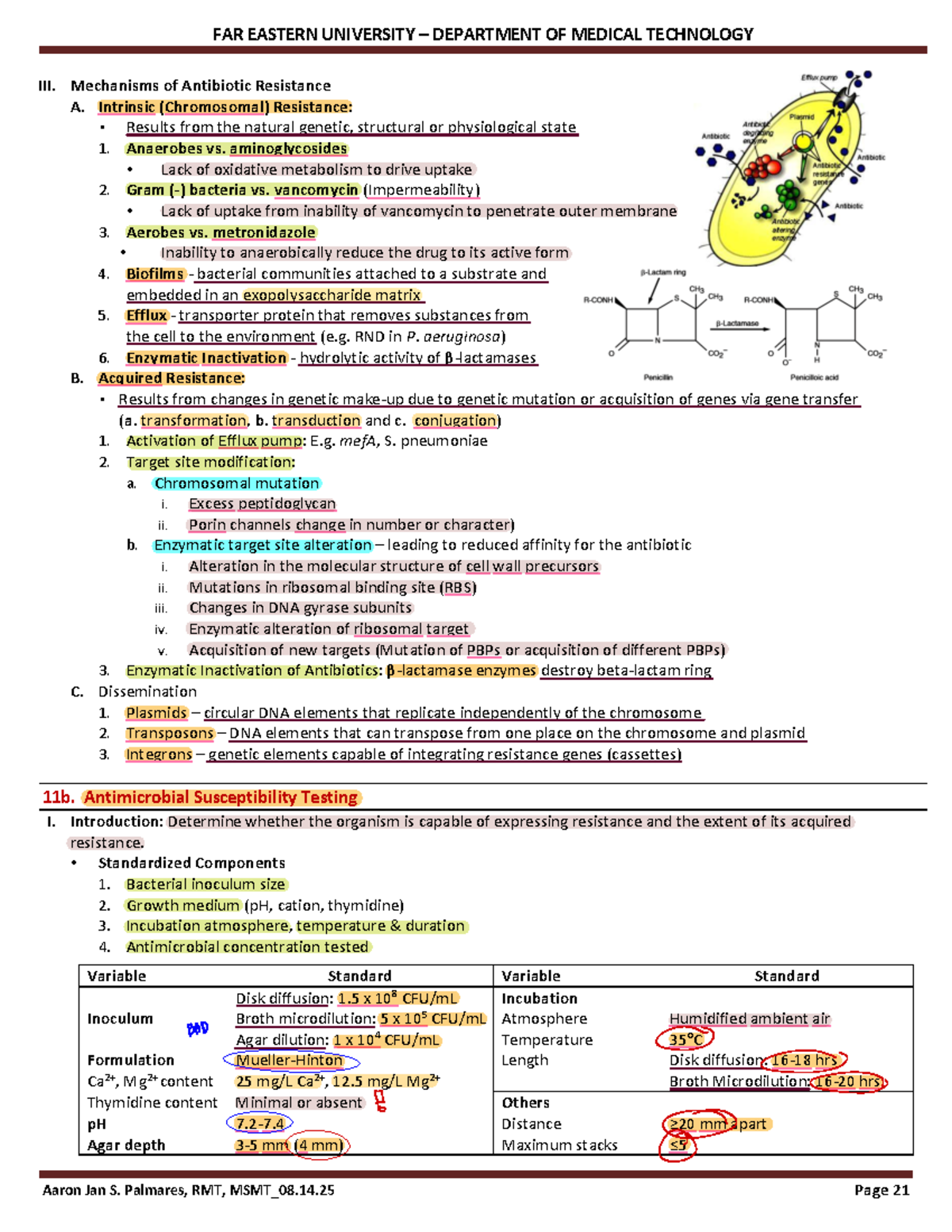 FAR EASTERN UNIVERSITY DEPARTMENT OF MEDICAL TECHNOLOGY Antimicrobial ...