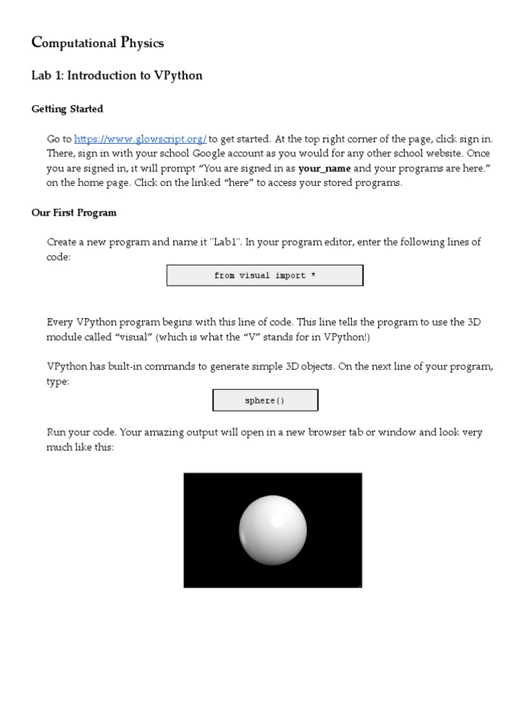 Introduction to Programming in Python Lab 2: Introduction to VPython