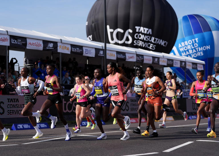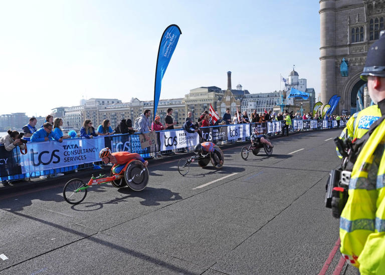 Tens of thousands pounding streets in record-breaking London Marathon