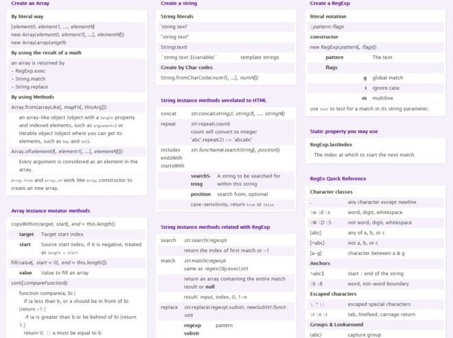 JavaScript Array, String and RegExp Cheat Sheet by amethystlei ...