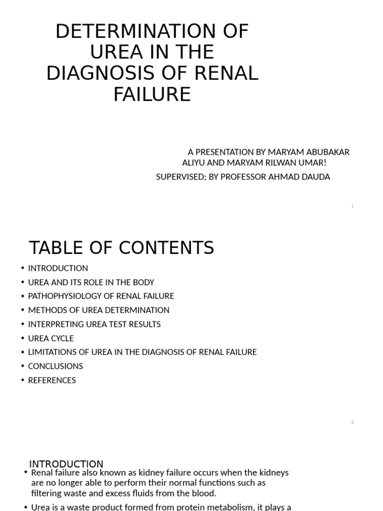 Determination of Urea in the Diagnosis of Renal | PDF | Kidney | Urea