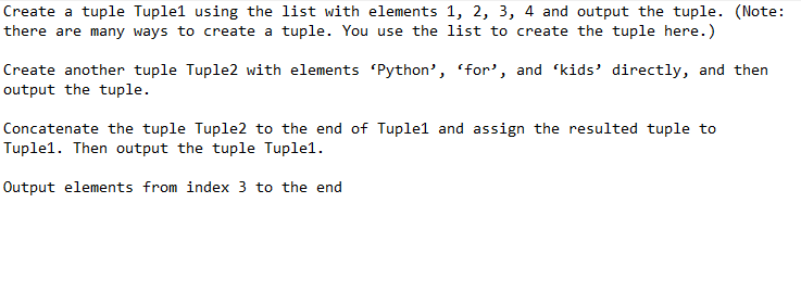 Based on this image's title: “Solved Python Coding Question Topic: Tuple Create a program | Chegg.com”