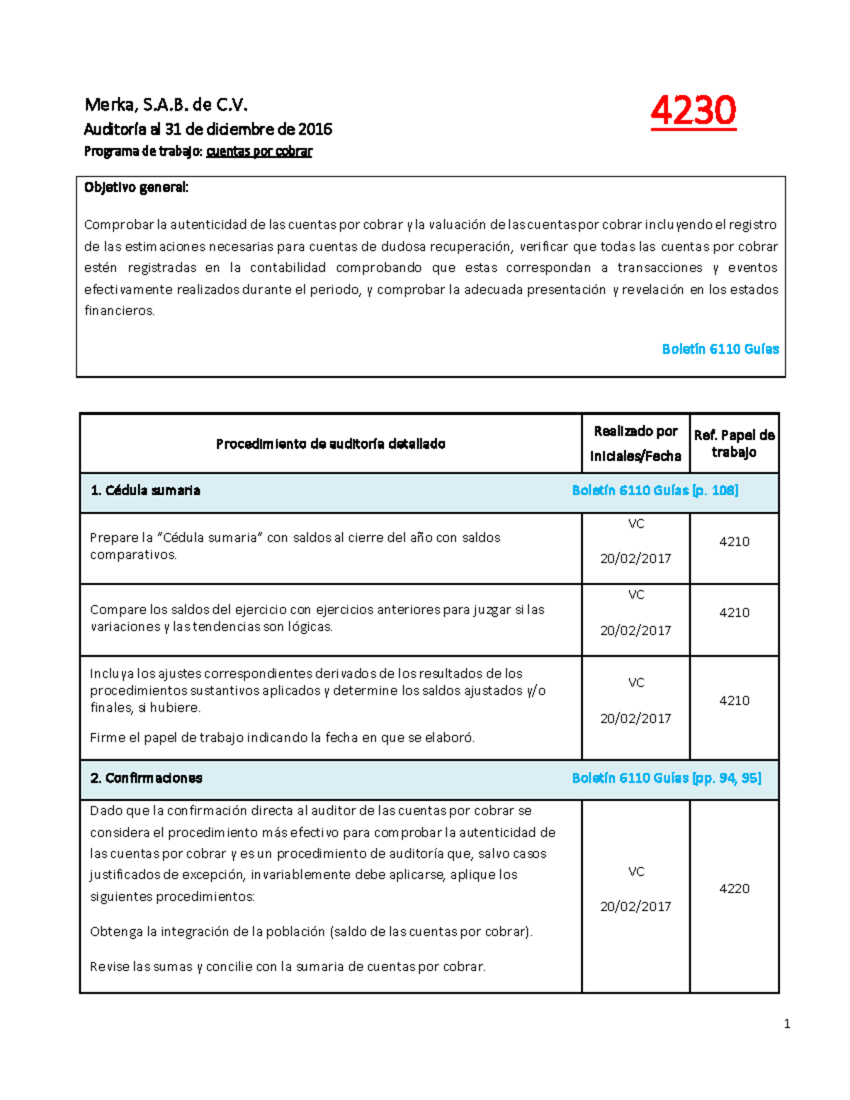 Programa de auditoría de cuentas por cobrar - Merka, S.A. de C. 4230 ...