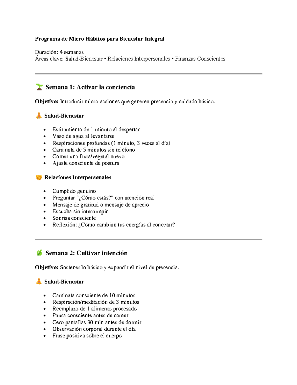 Programa de Micro Hábitos para Bienestar Integral: 4 Semanas de ...