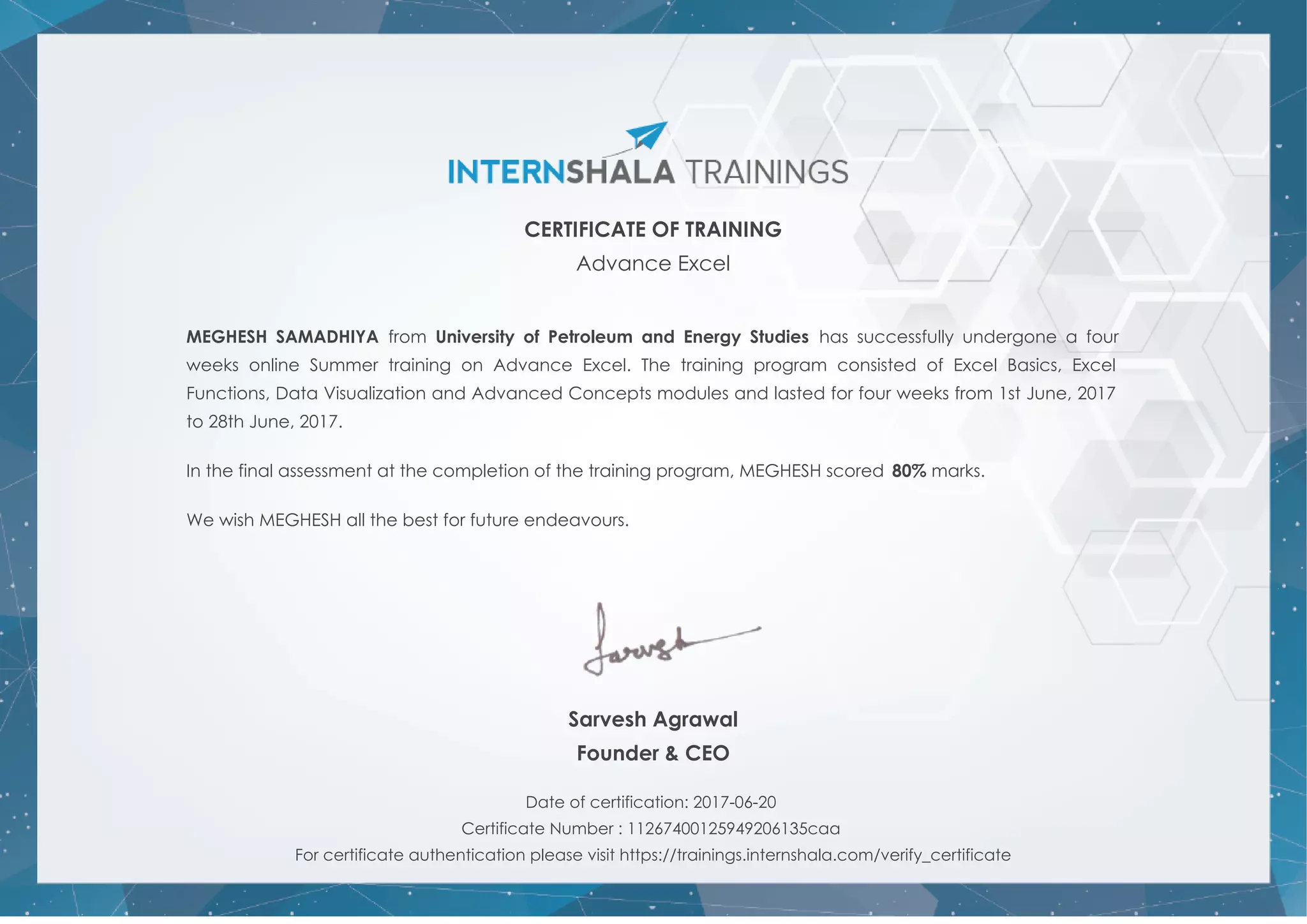 Advanced Excel Training - Internshala Trainings » Shaswat Manoj Jha