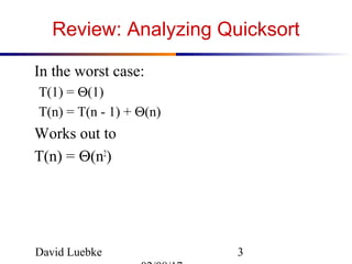 CS 332: Algorithms Quicksort David Luebke /9/ ppt download