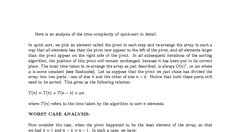 Quicksort Analysis: Time Complexity Breakdown and Cases - Studocu