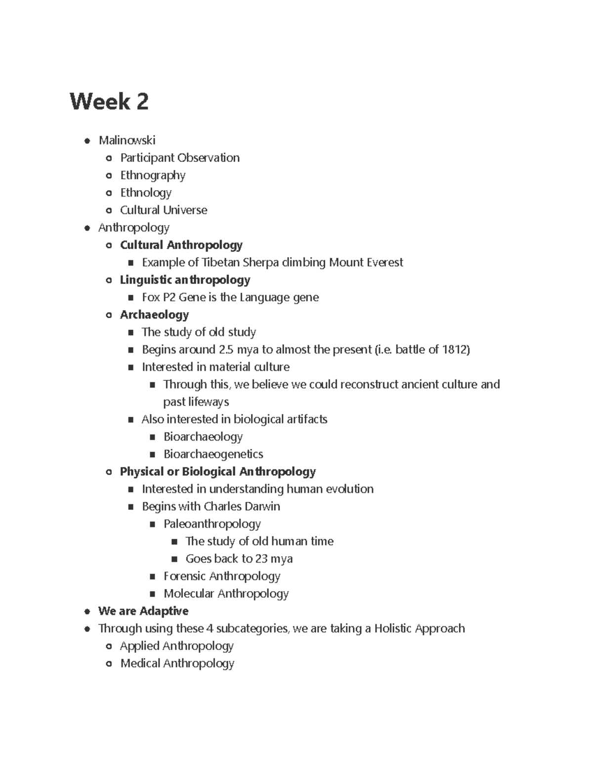 Week 2 - Lecture Notes - Week 2 Malinowski Participant Observation ...