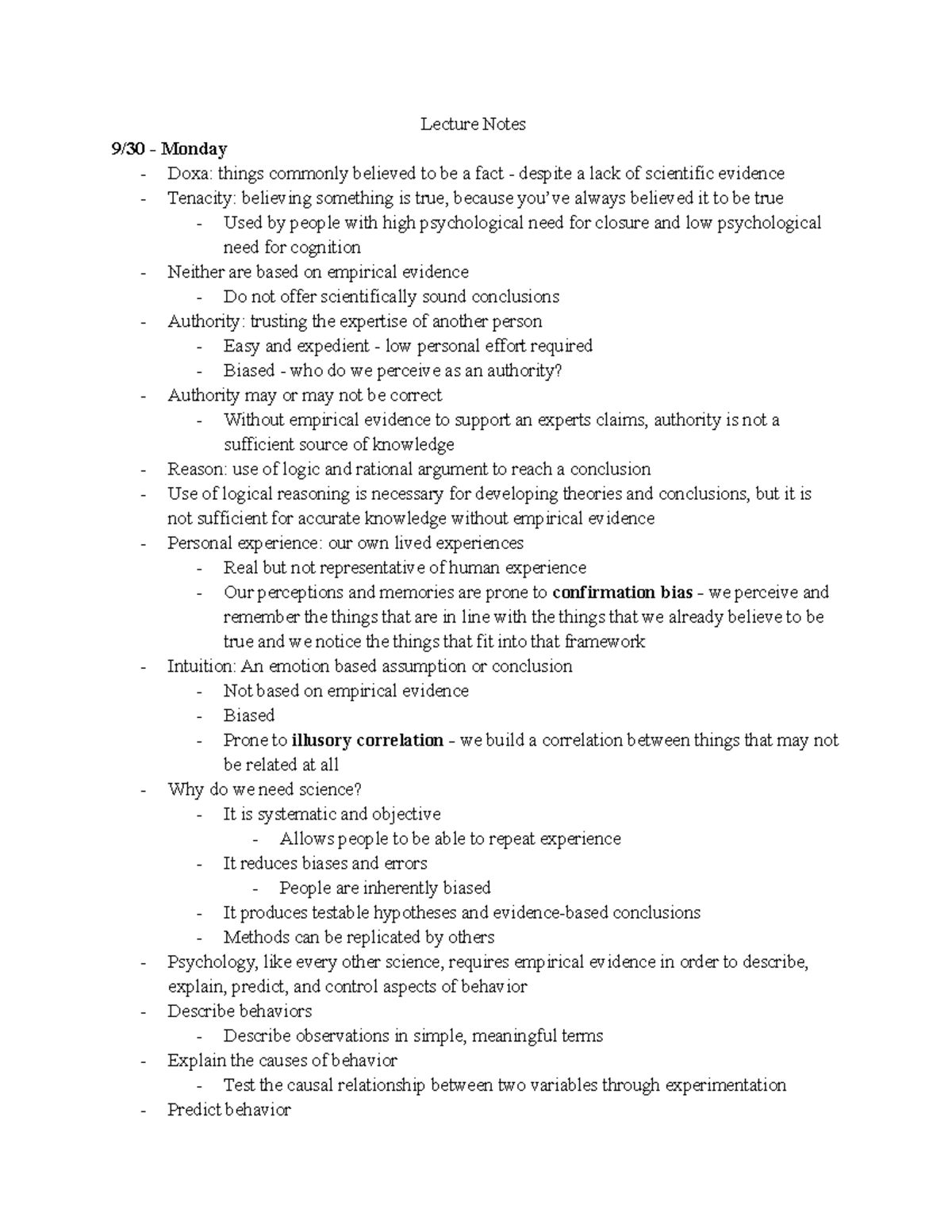 Week 2 Class Notes - Lecture Notes 9/30 - Monday Doxa: things commonly ...