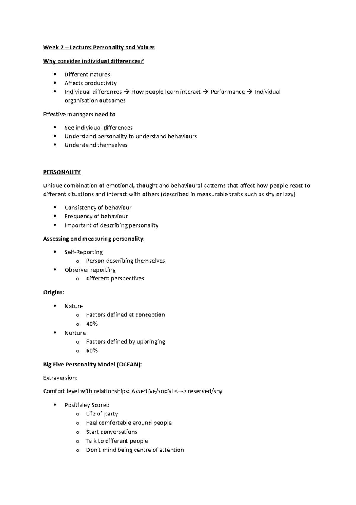 Week 2- OB - week 2 lecture notes - Week 2 - Notes from class ...
