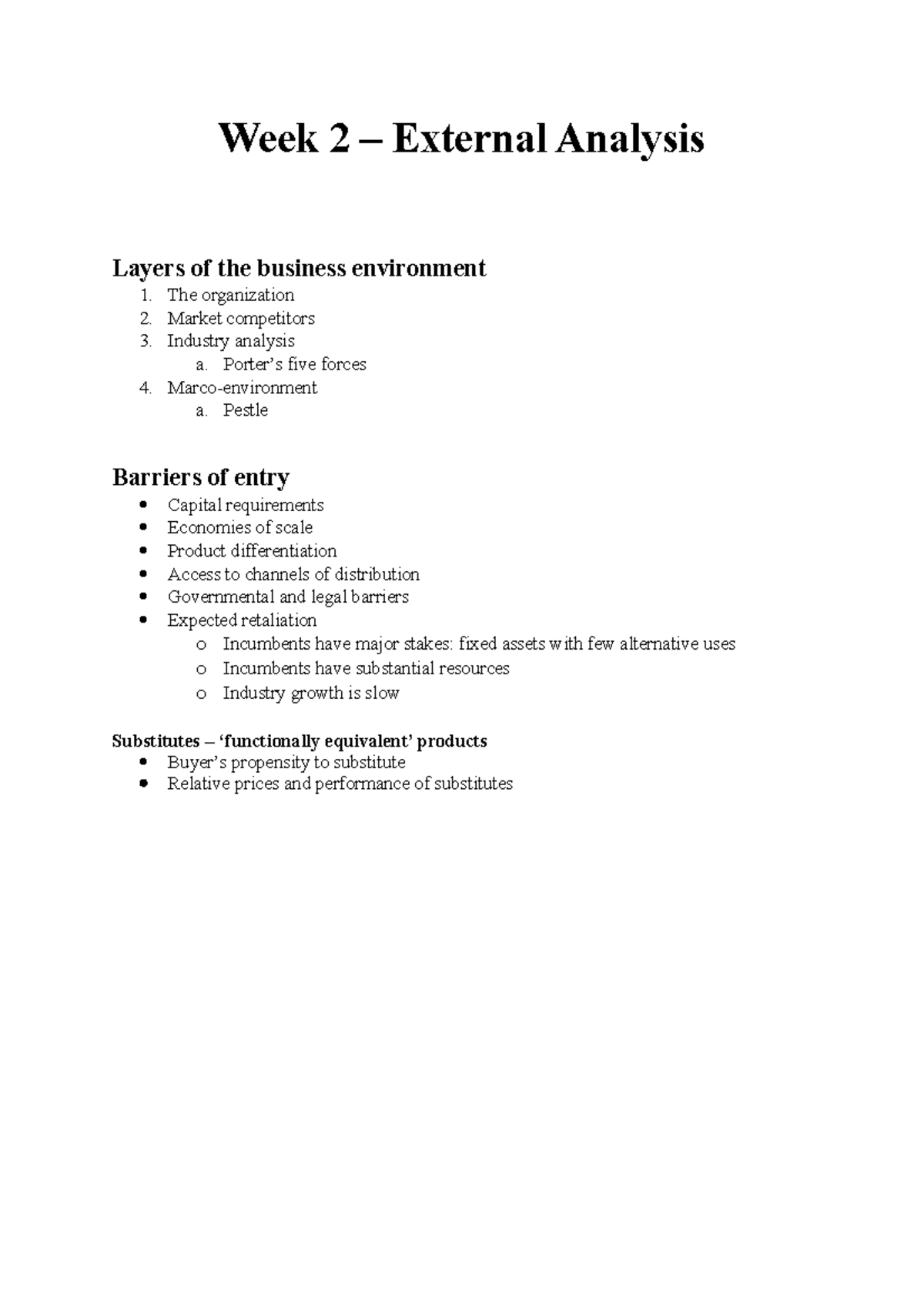 Week 2 - lecture notes - Week 2 – External Analysis Layers of the ...