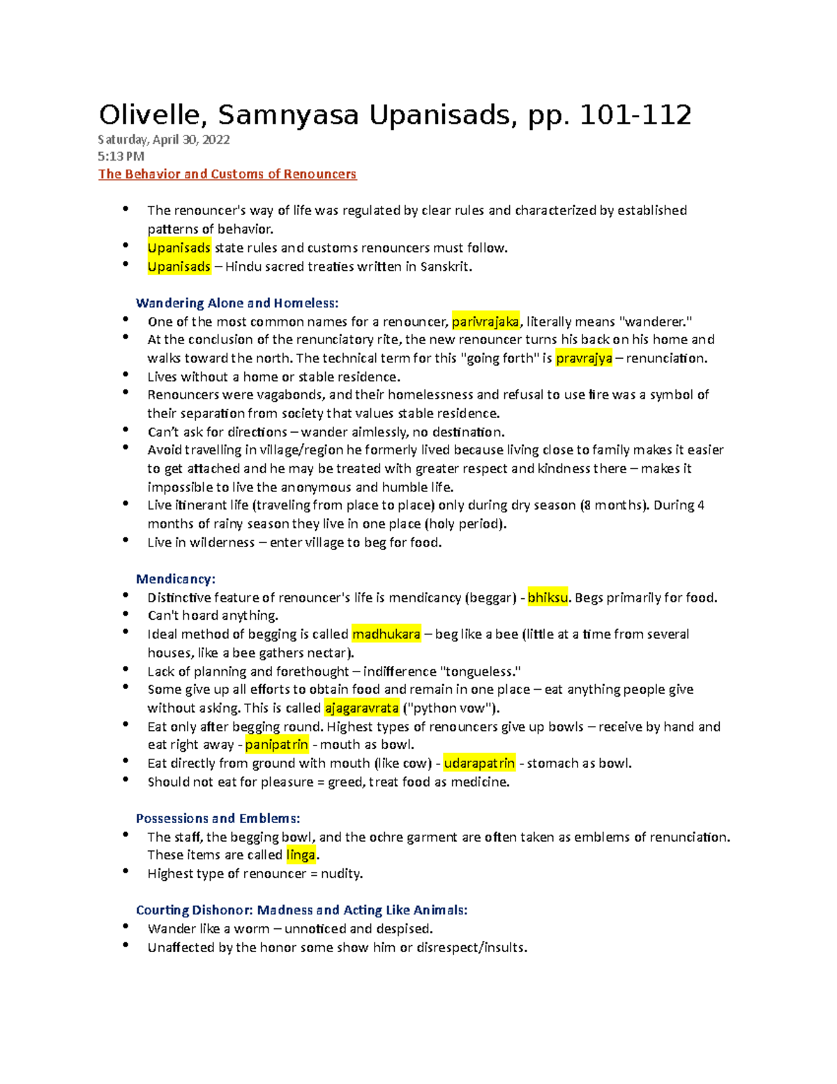 Week 2 - Lecture notes for week 2. - Olivelle, Samnyasa Upanisads, pp ...