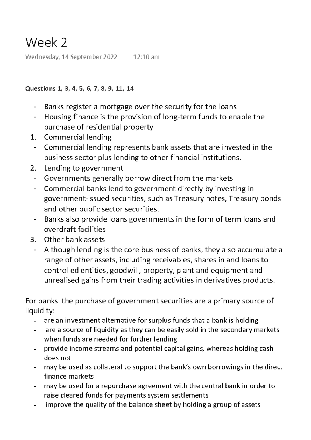 Week 2 - Week 2 lecture notes - Questions 1, 3, 4, 5, 6, 7, 8, 9, 11 ...