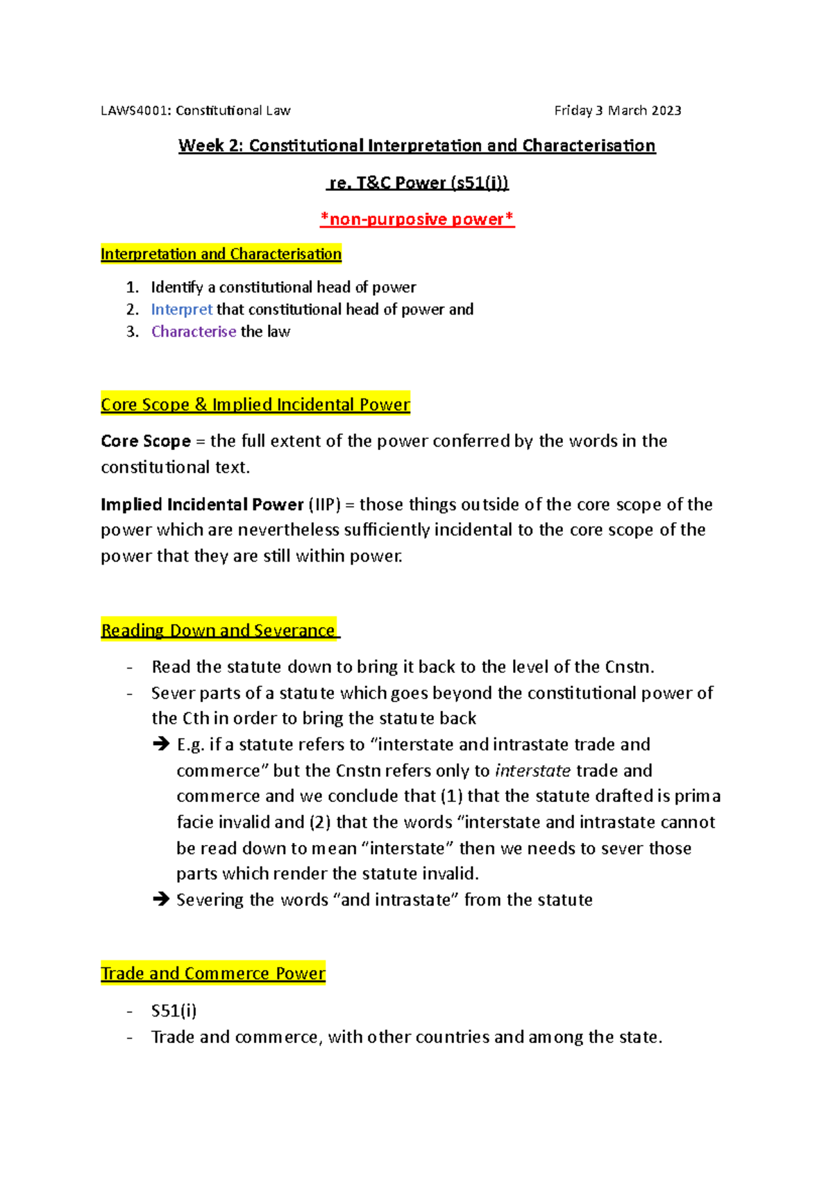 Week 2 Lecture Notes - Trade and Commerce Power - LAWS4001 ...