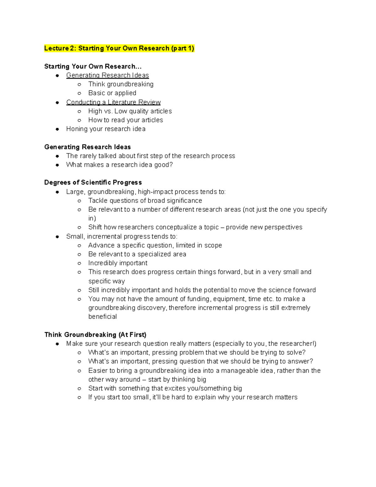2801 - Week 2 - Week 2 lecture notes - Lecture 2: Starting Your Own ...