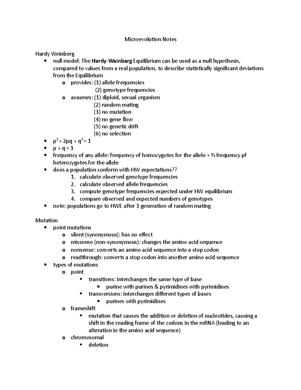 Week 2 Class Notes (Microevolution) - Microevolution Notes Hardy ...