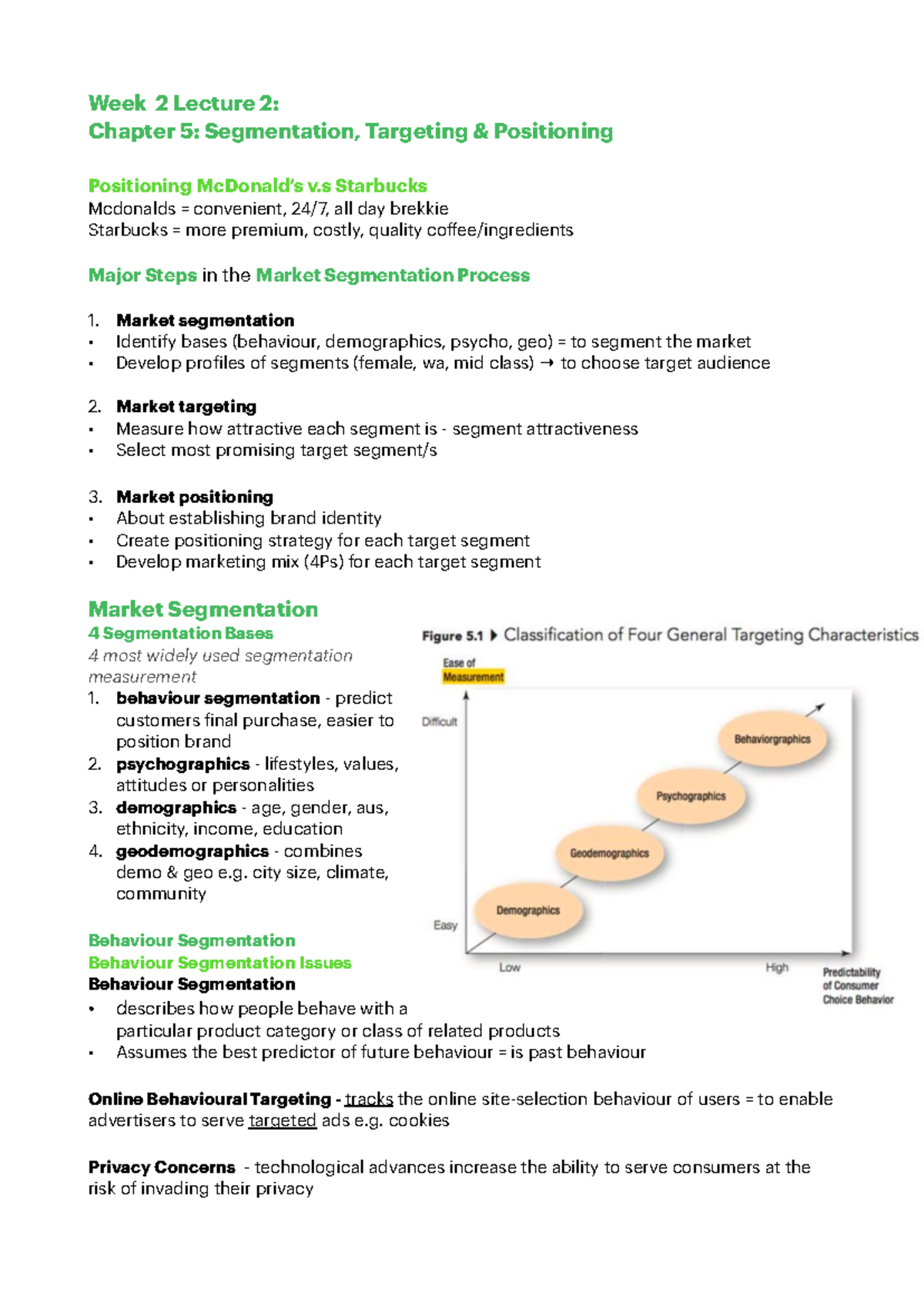 Lecture 2 Notes - Week 2 Lecture 2: Chapter 5: Segmentation, Targeting ...