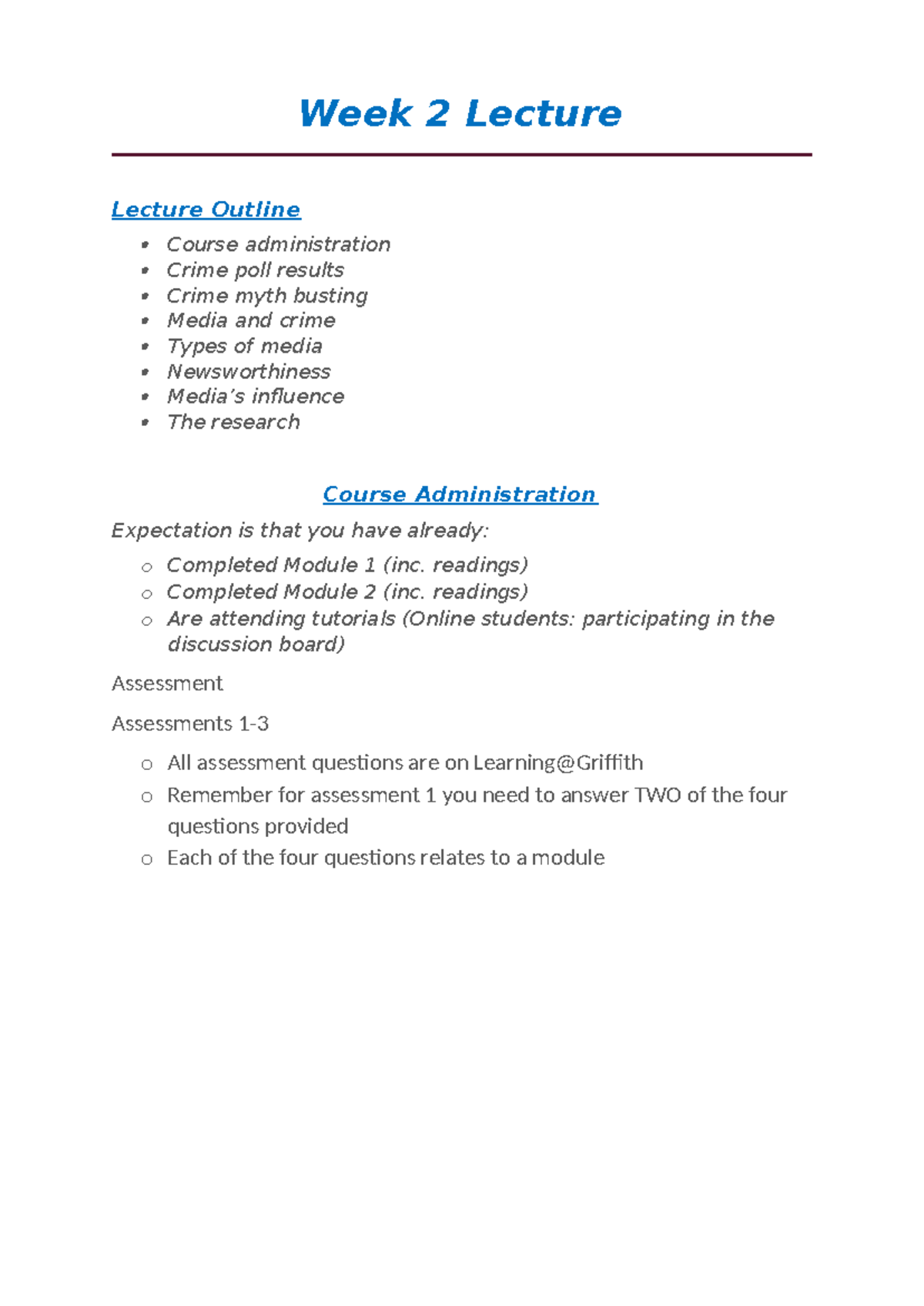 Week 2 Lecture- Intro To Crim - Week 2 Lecture Lecture Outline Course ...