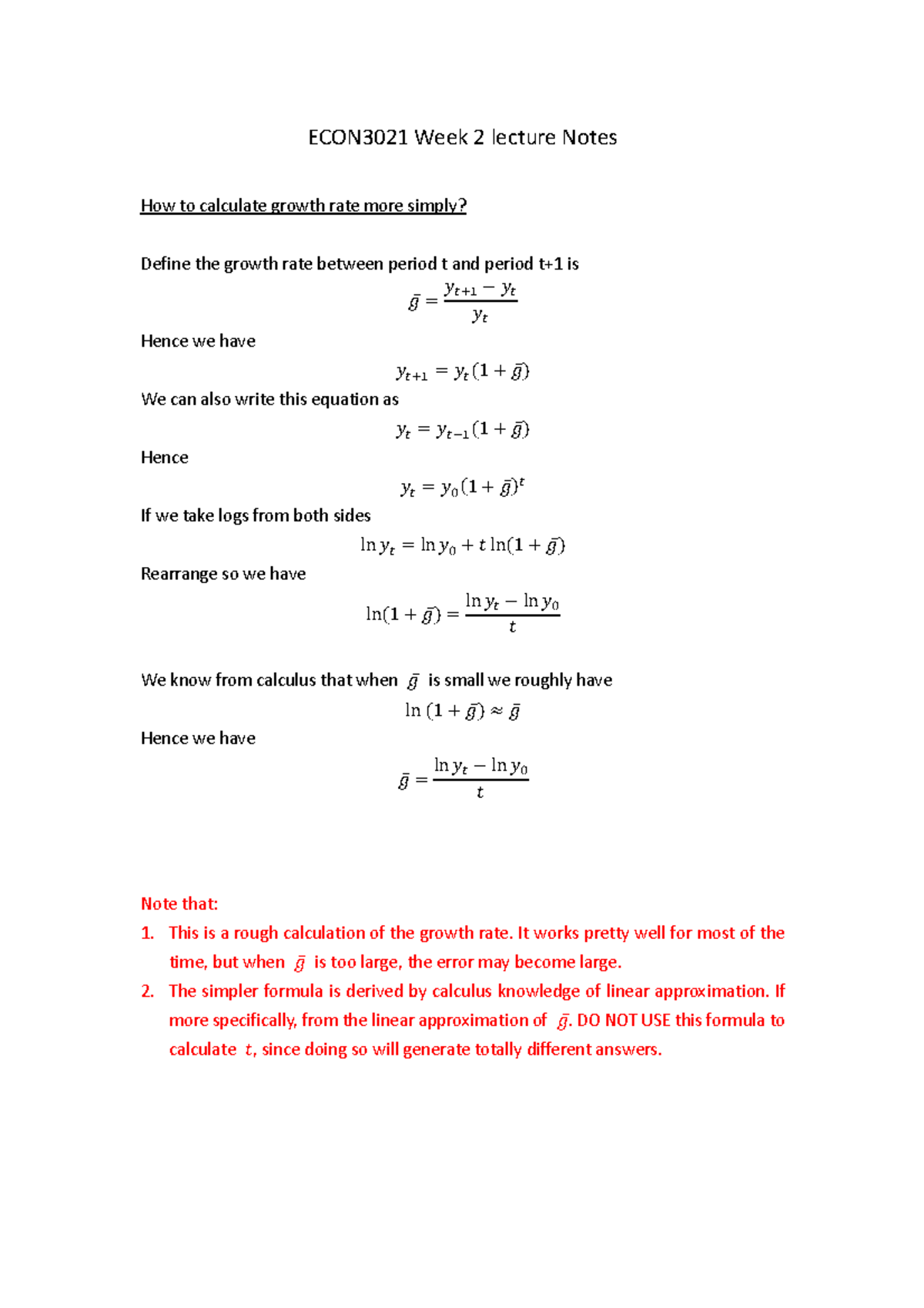 Week 2 lecture notes - Approximation - ECON3021 Week 2 lecture Notes ...