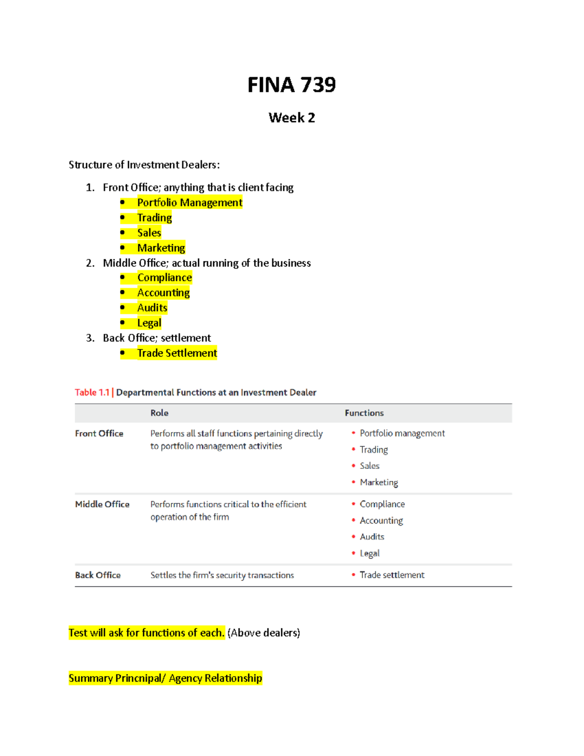 Week 2 - Class notes for Week 2 - FINA 739 Week 2 Structure of ...