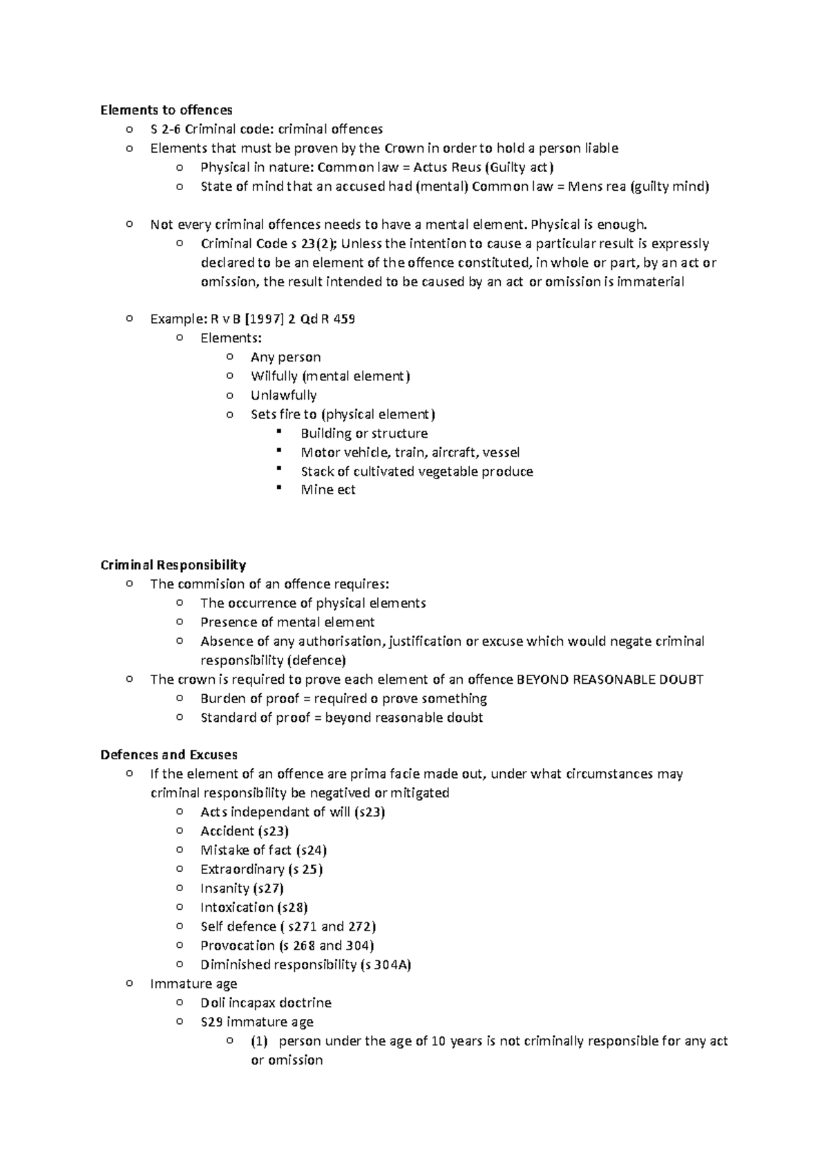 Week 2 Lecture notes - Elements to offences o S 2-6 Criminal code ...