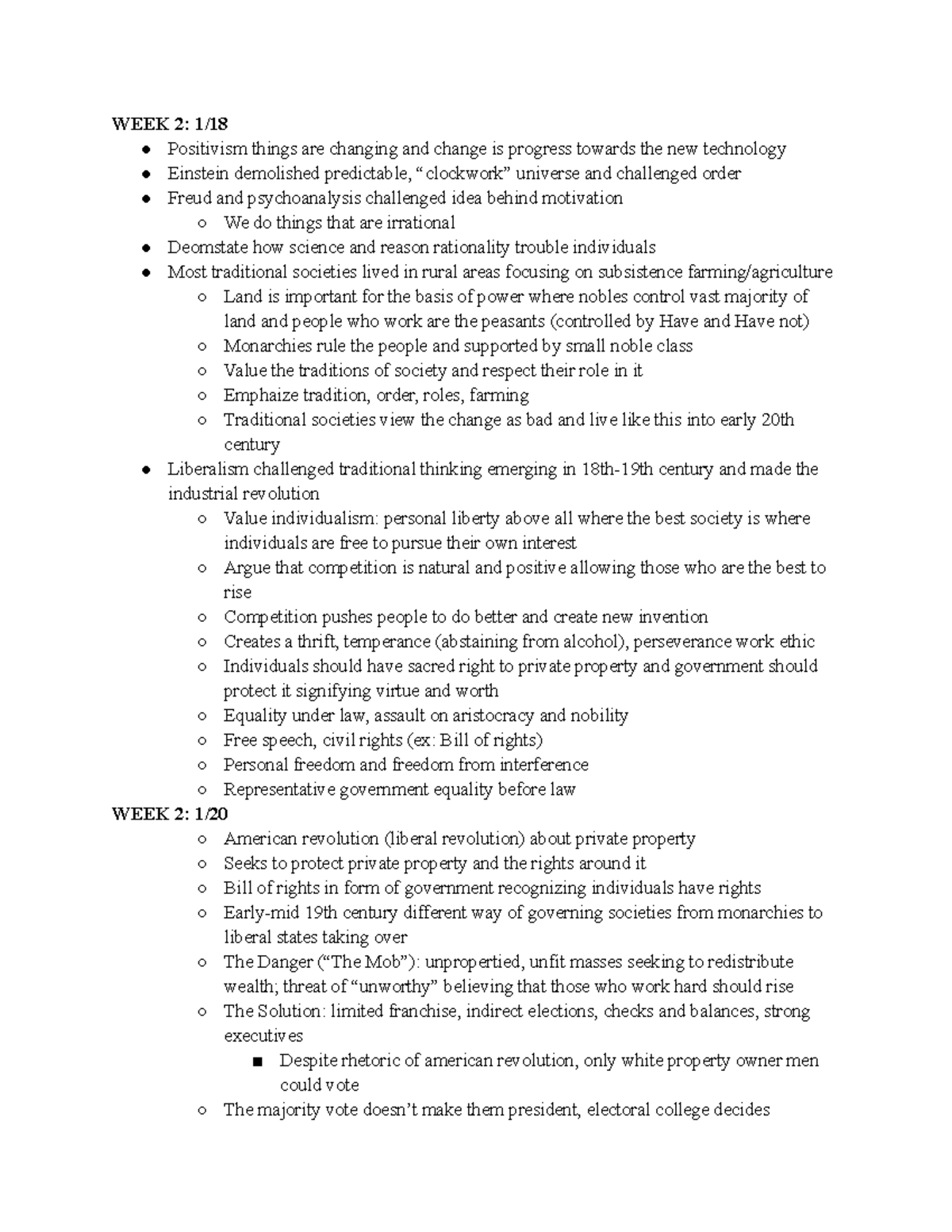Week 2 Lecture Notes (Hist) - WEEK 2: 1/ Positivism things are changing ...