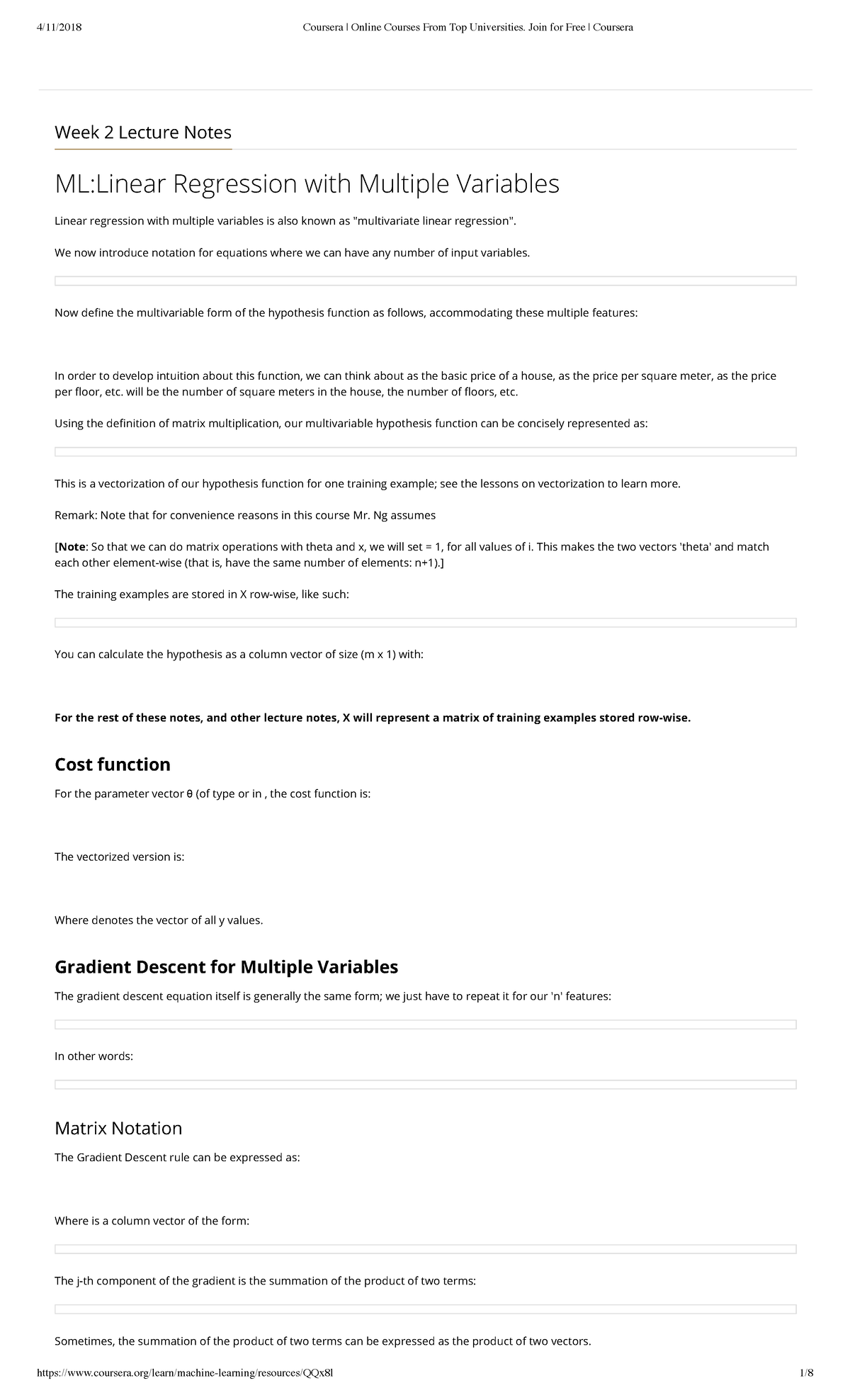 Week 2 Lecture Notes - Week 2 Lecture Notes ML:Linear Regression with ...