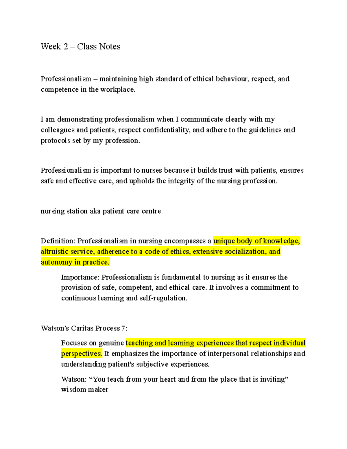 Week 2 Lecture Notes - FIRST WEEK OF THE PROGAM BMCC NUR. PROF. LINDSAY ...