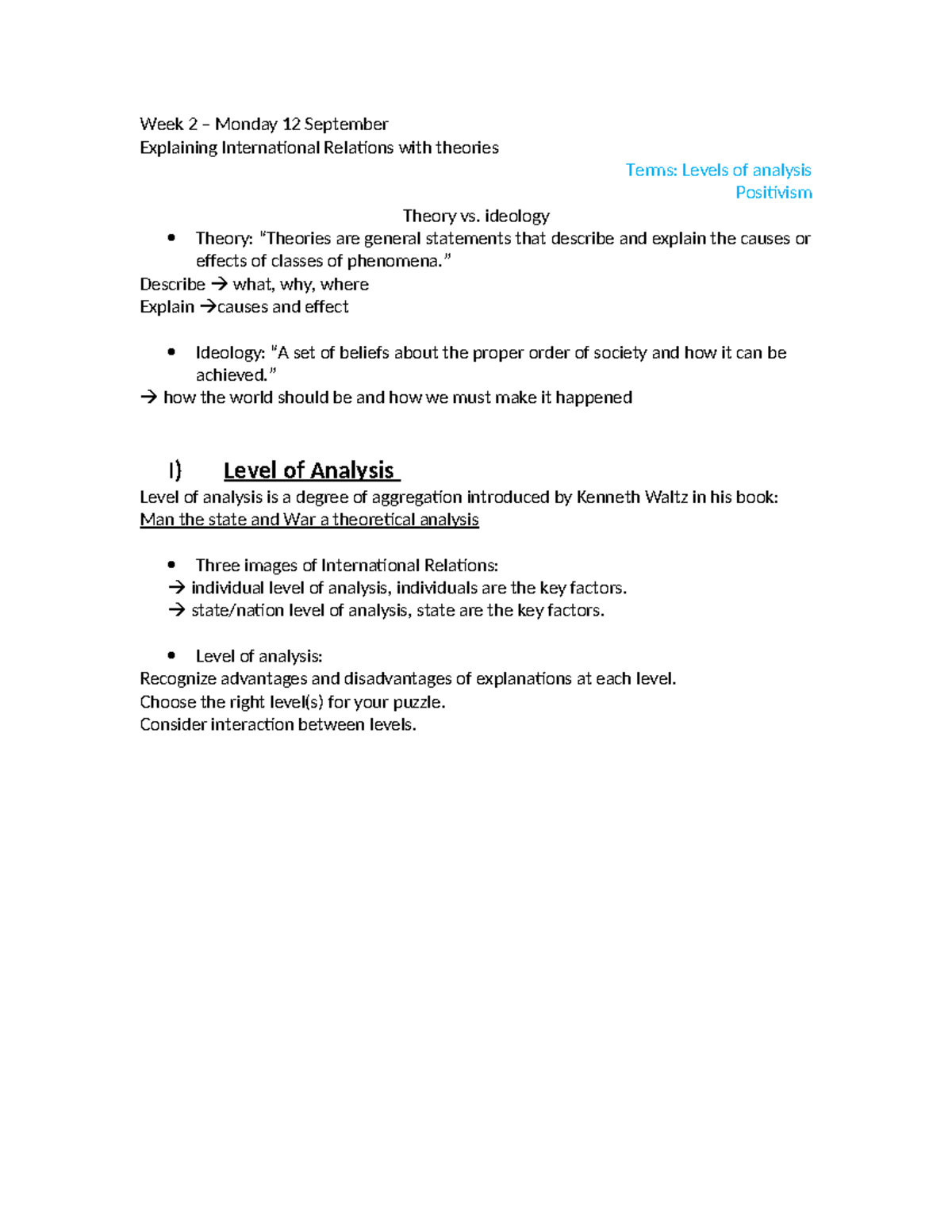 Week 2 Lecture Notes: Theories in International Relations - Studocu