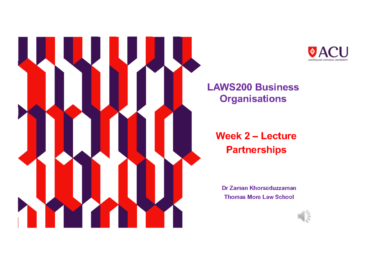 LAWS200 Week 2 Lecture Notes: Understanding Partnerships - Studocu