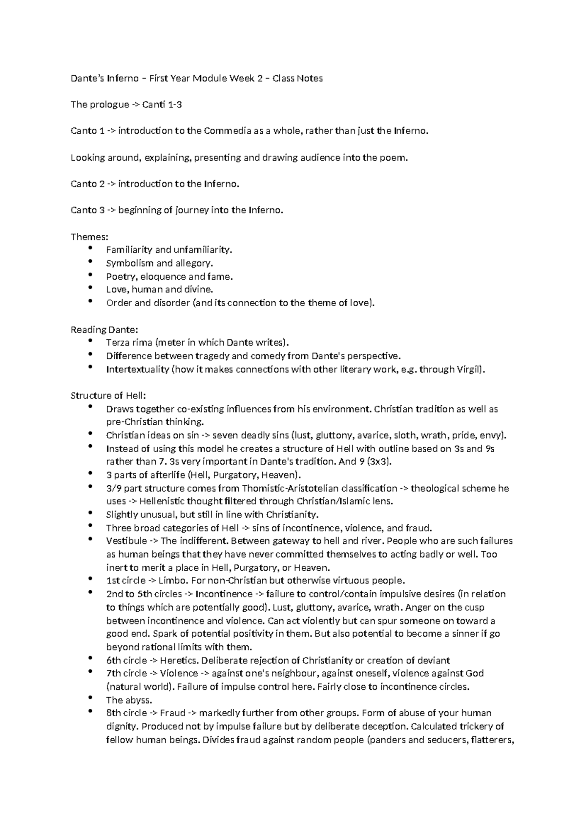 Inferno 1st Year Module Week 2 Class Notes: Prologue & Canto 1 Insights ...