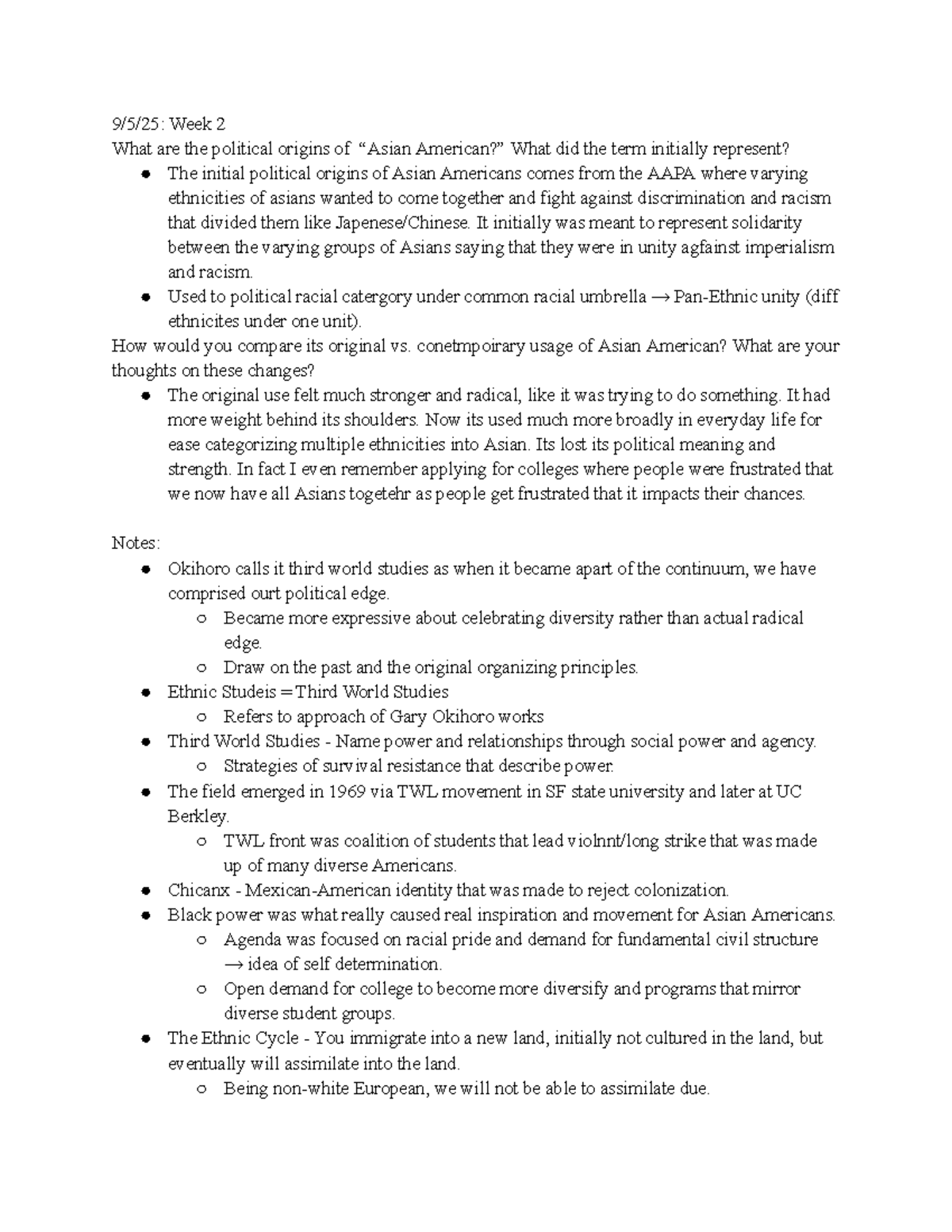Asian 210 - Week 2 Class Notes: Political Origins of Asian American ...