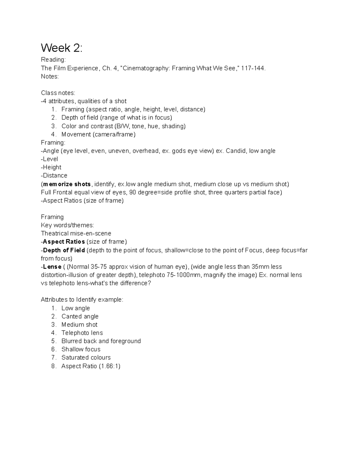 Week 2: Class Notes on The Film Experience, Ch. 4 - Framing Techniques ...