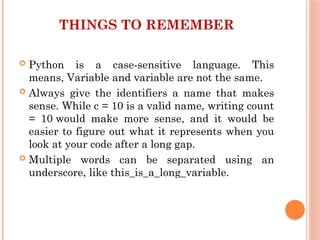 Basic concept of Python.pptx includes design tool, identifier ...