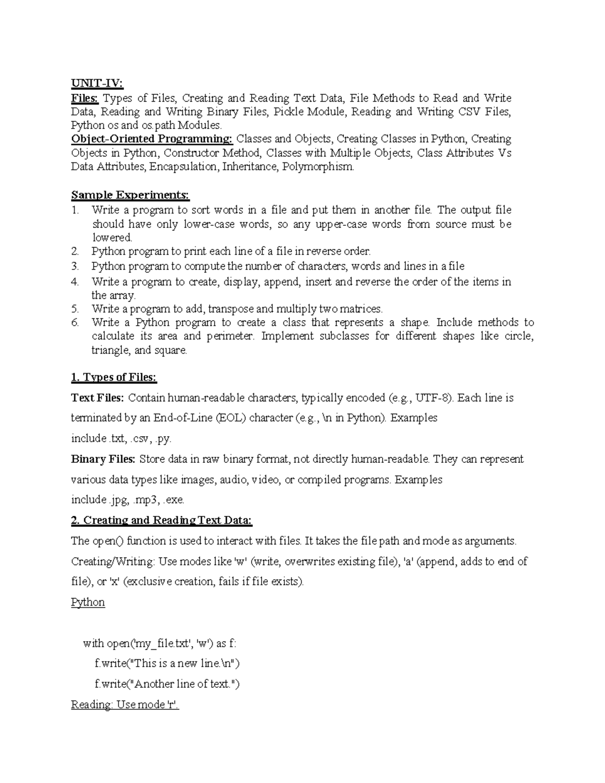 Python Manual: File Handling & OOP Concepts (Unit-4) - Studocu