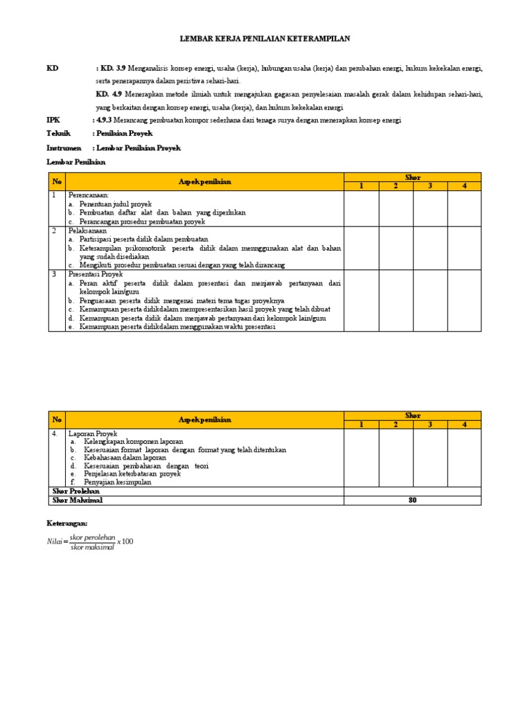 LEMBAR KERJA PENILAIAN KETERAMPILAN (Proyek) | PDF