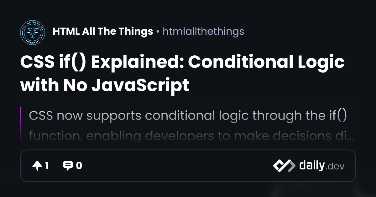 CSS if() Explained: Conditional Logic with No JavaScript | daily.dev